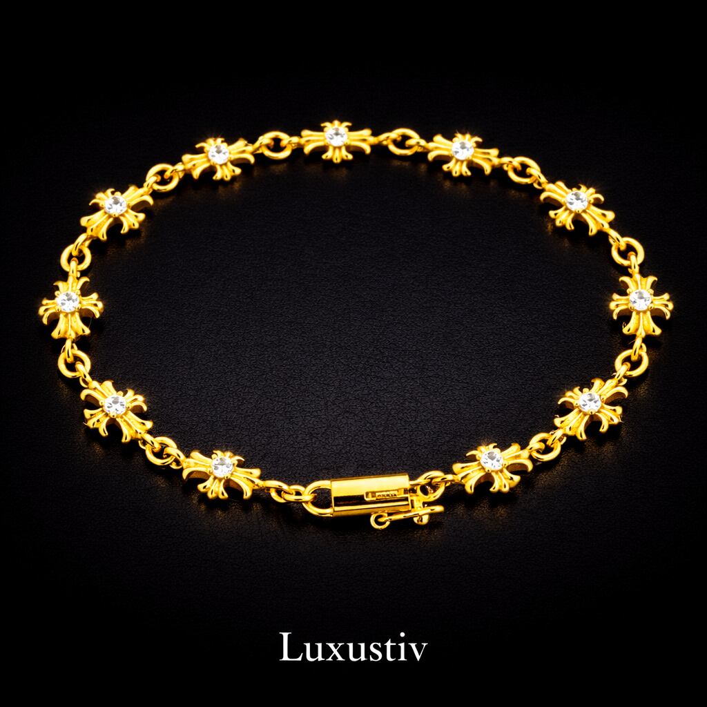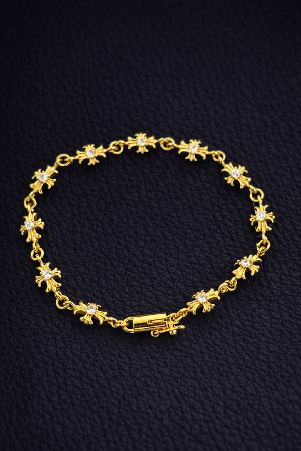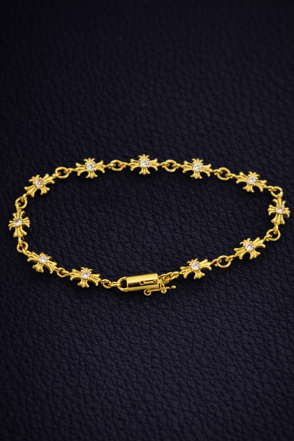 視線を奪う クロスブレスレット|CZストーン タイニークロスチェーン 19.5cm メンズ