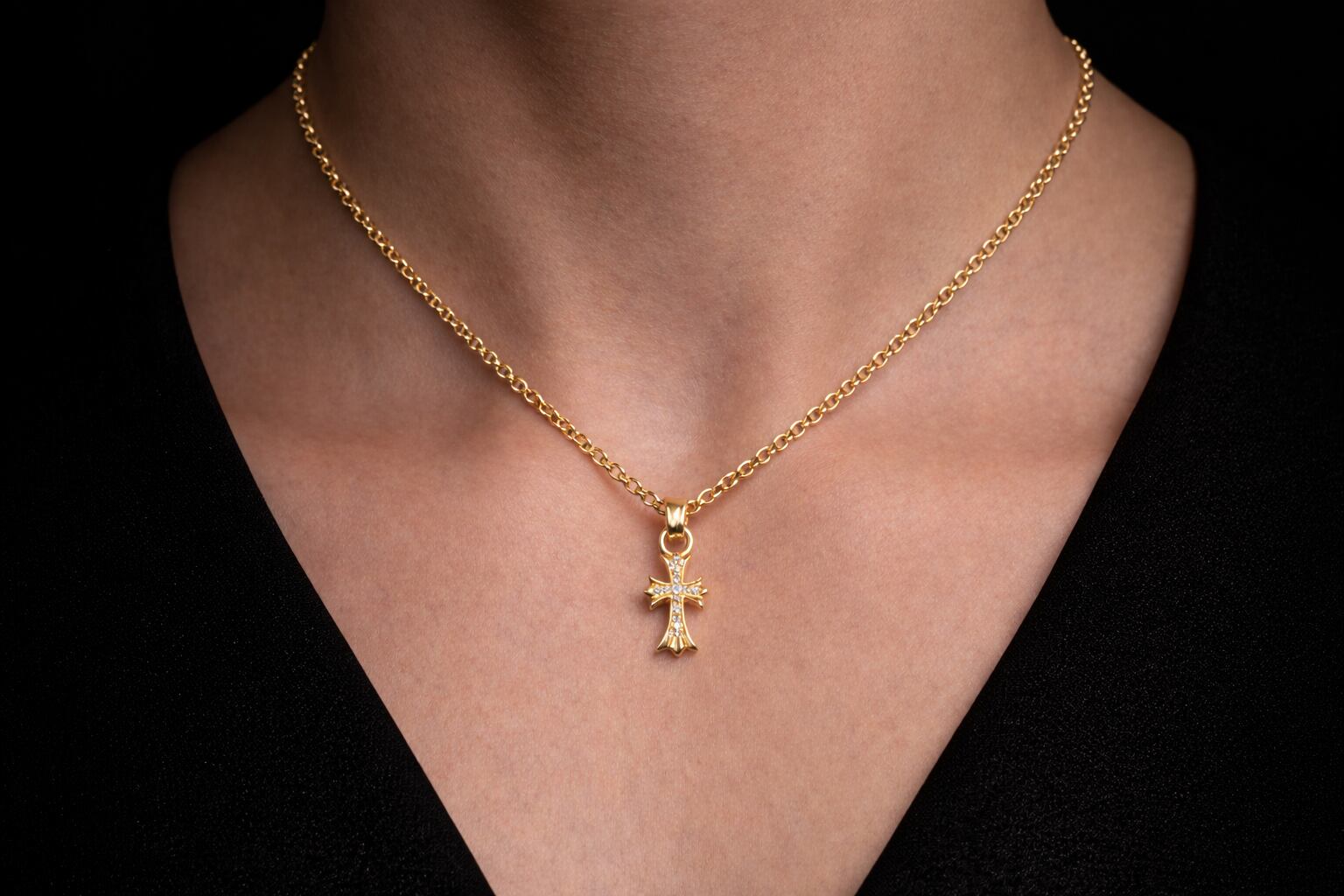 静かに輝く 22Kコーティング クロスネックレス|Silver925 × ジルコニア 45cm